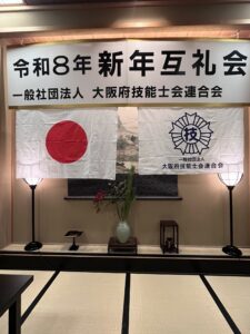 大阪府技能士連合会 新年互礼会 [記事公開日]2026/02/12 [最終更新日]2026/03/05 令和8年2月10日(火) 料亭 天王殿において、大阪府技能士連合会の新年互礼会が開催されました。 会長あいさつ、来賓紹介、表彰状贈呈、技能グランプリ出場者の紹介及び激励が行われました。懇談会では話に花が咲き、華やかな雰囲気の中お開きとなりました。